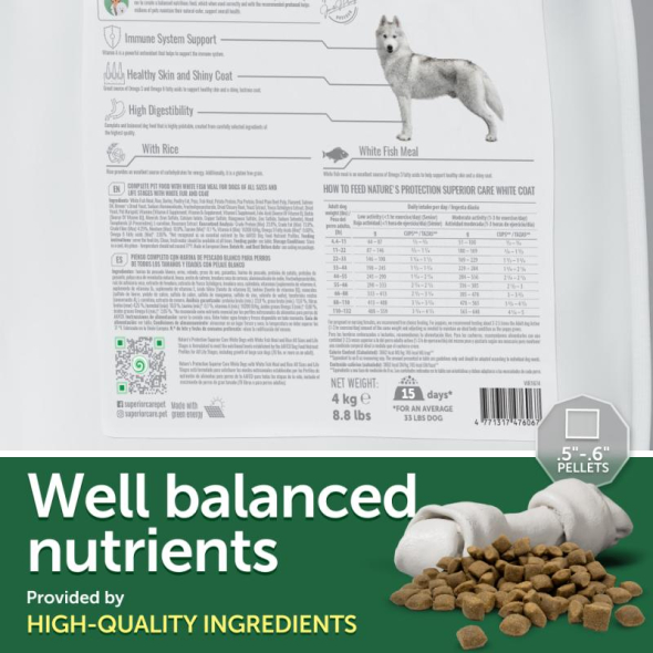 NATURE'S PROTECTION SUPERIOR CARE dry pet food with white fish for dogs of all sizes and life stages with white coat 4 kg