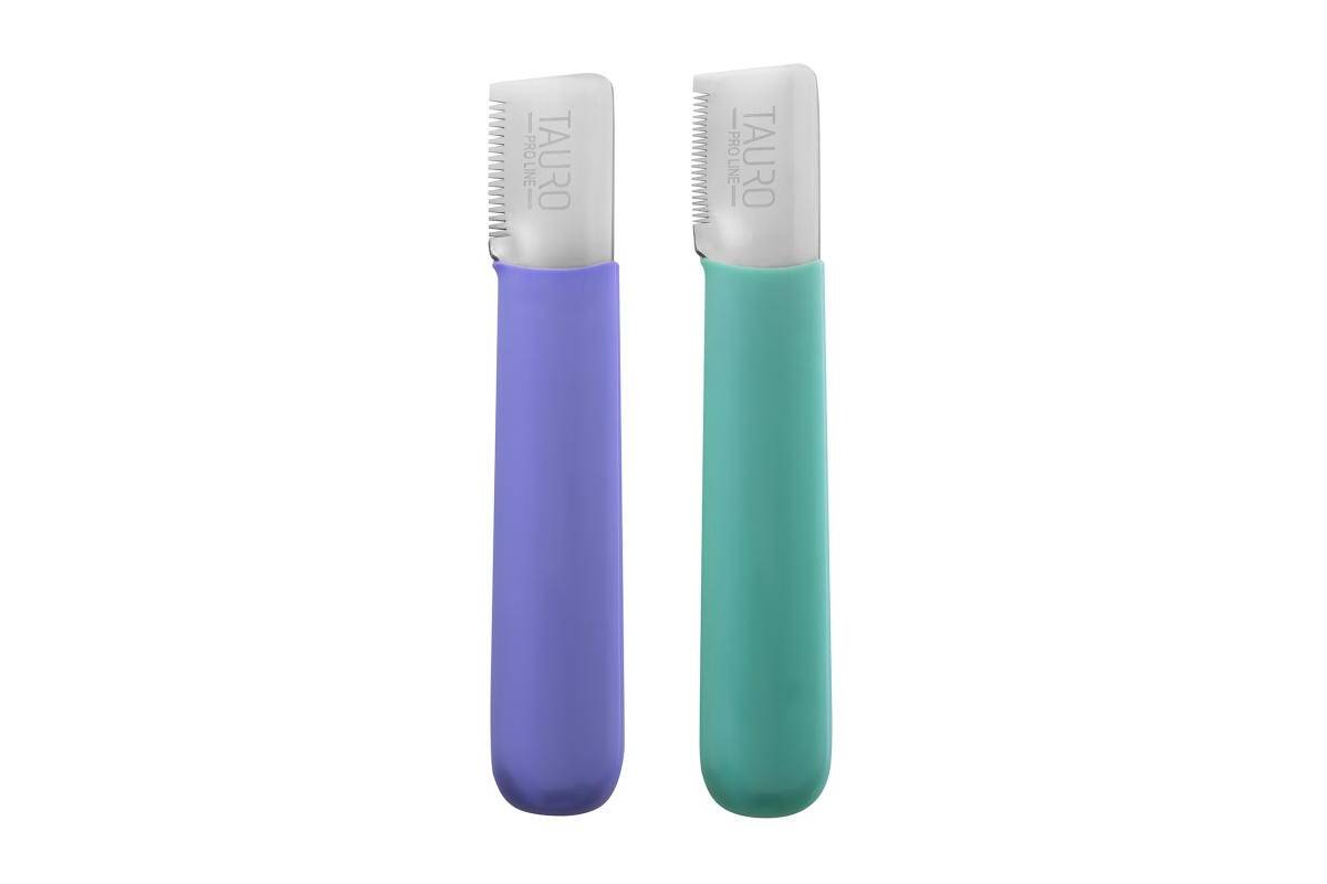 TAURO PRO LINE stainless steel trimming and styling blades for pets with case mint and purple, 4x2.3 cm