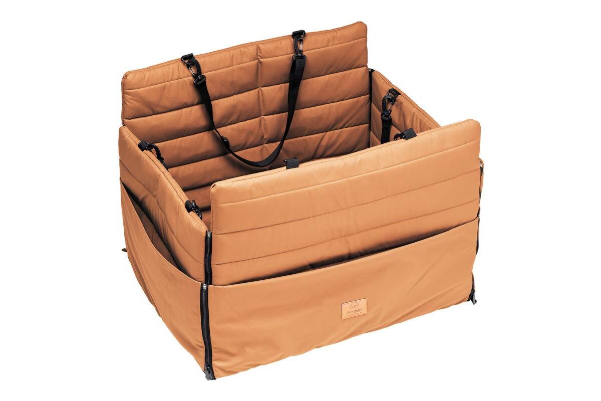 The MISOKO pet carrier bag with seat protection combines comfort for pets and cleanliness for car interiors. Its padded interior keeps pets relaxed, while high walls provide safety and reduce stress. The seat cover function prevents dirt, fur, and moisture from reaching the car seat. Made from durable, easy-to-clean materials, it’s built for everyday use and convenient for longer journeys. With MISOKO, every detail is designed to make traveling with pets simple and stylish.