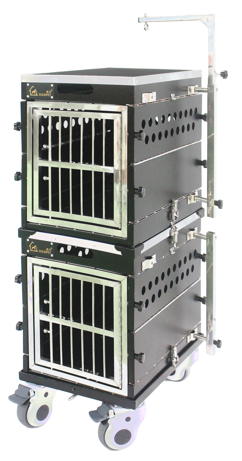 UNIPET foldable pet cage set, 46,5x31x94 cm double, with base and fan box, black