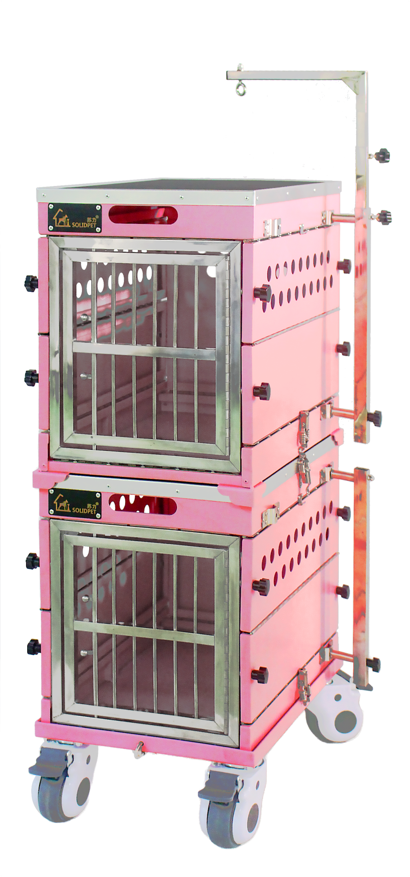 UNIPET foldable pet cage set, 46,5x31x94 cm double, with base and fan box, pink