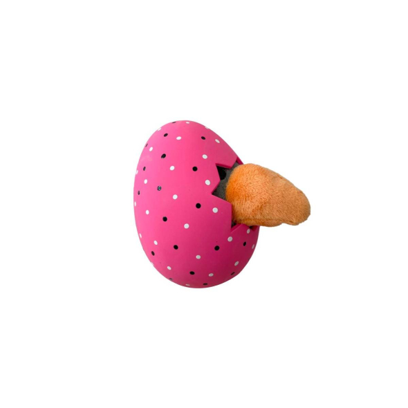 The pink egg from the COSMIC BUDDIES collection is a toy that combines multiple materials: elastic latex, soft plush, and an internal PP cotton filling. The squeaker provides auditory stimulation, while the various textures activate your dog’s senses, encouraging them to play longer.
