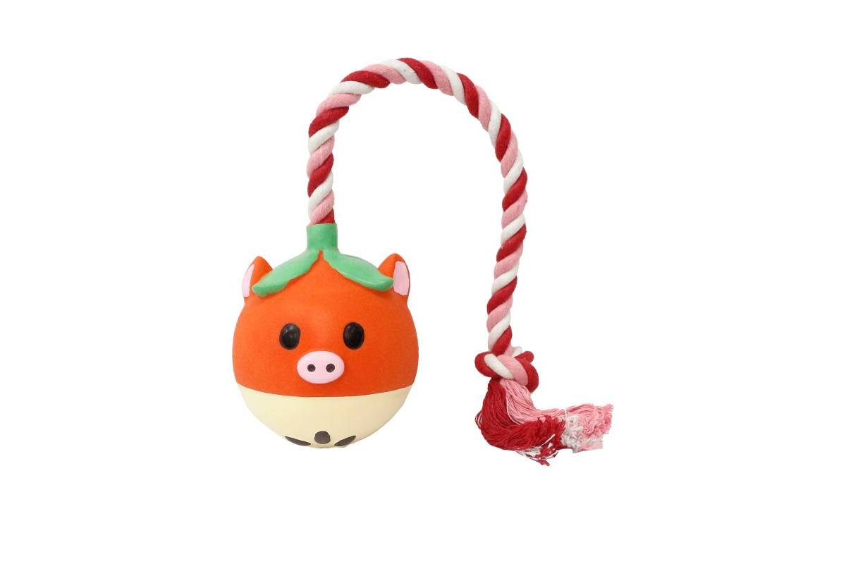 MISOKO pet toy, fruit with rope, latex, 40 cm red