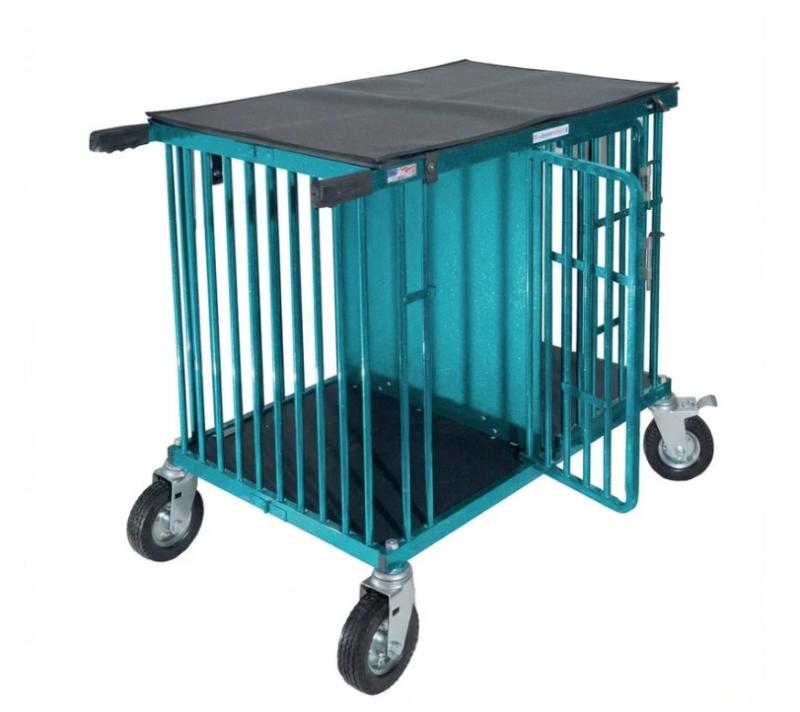 Each trolley is weather resistant and features stainless steel door latches and hinges, comes standard with feed bowl bars, fan bars and rubber grips on the handles.
