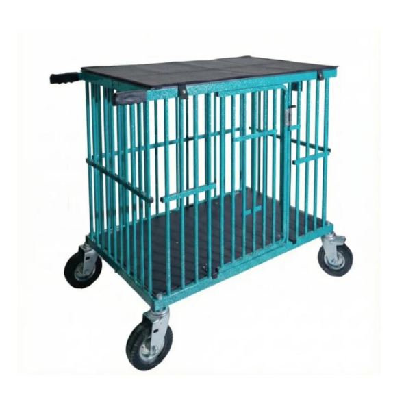 Each trolley is weather resistant and features stainless steel door latches and hinges, comes standard with feed bowl bars, fan bars, as well as rubber grips on the handles.