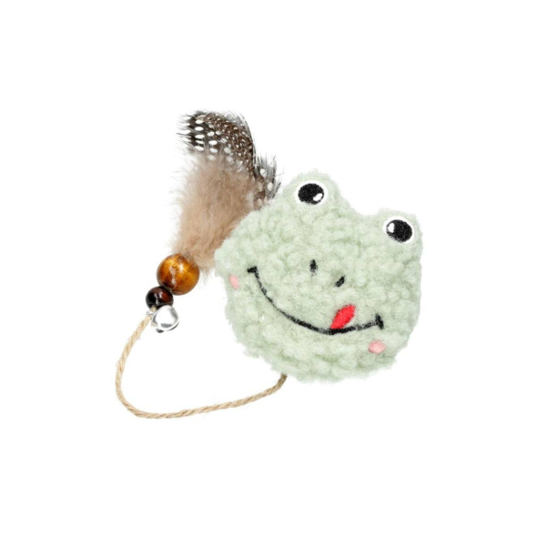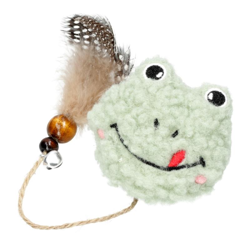HIPPIE PET toy for cat, 11 cm frog with a feather, green