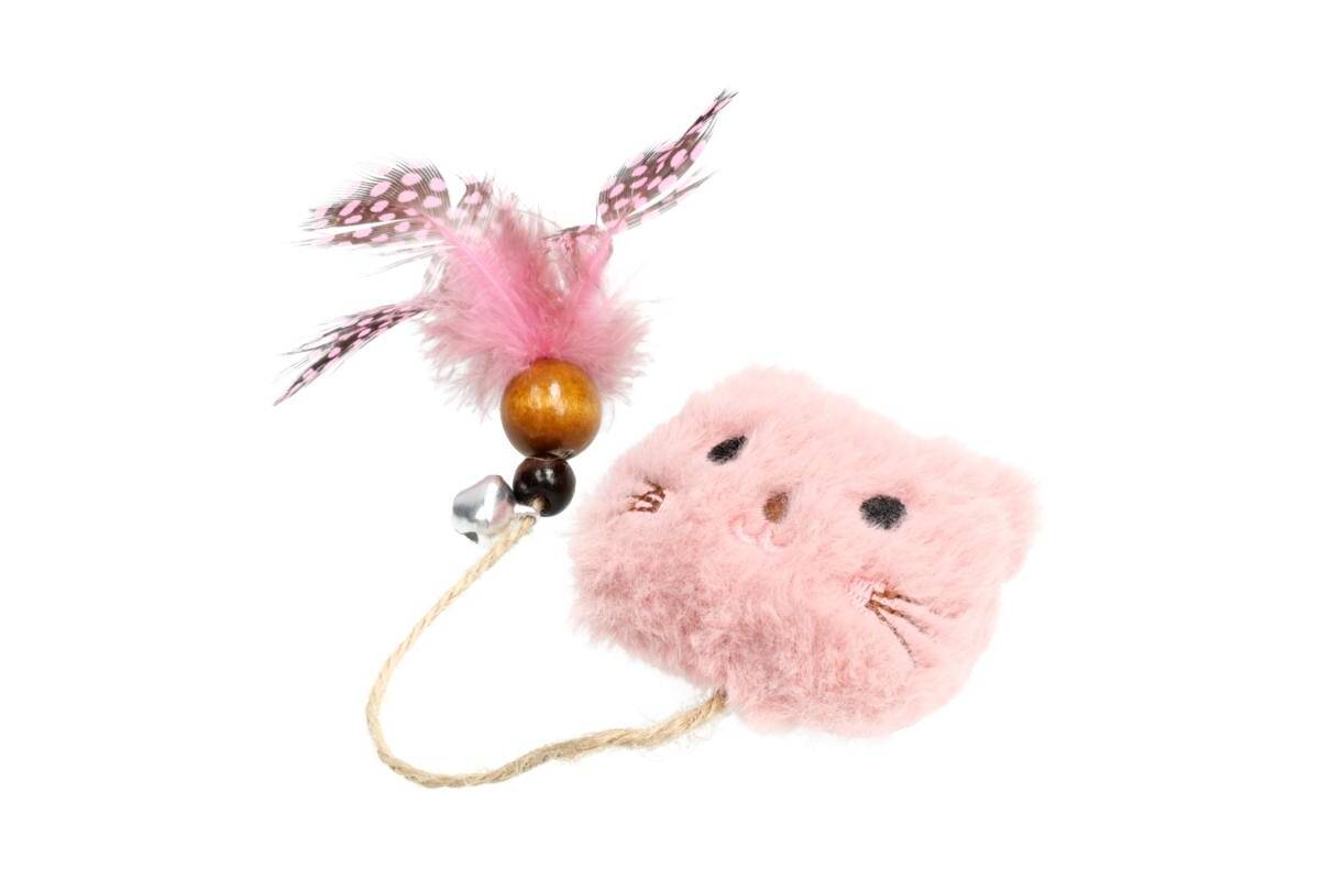 HIPPIE PET toy for cat, 11 cm teddy bear with a feather, pink