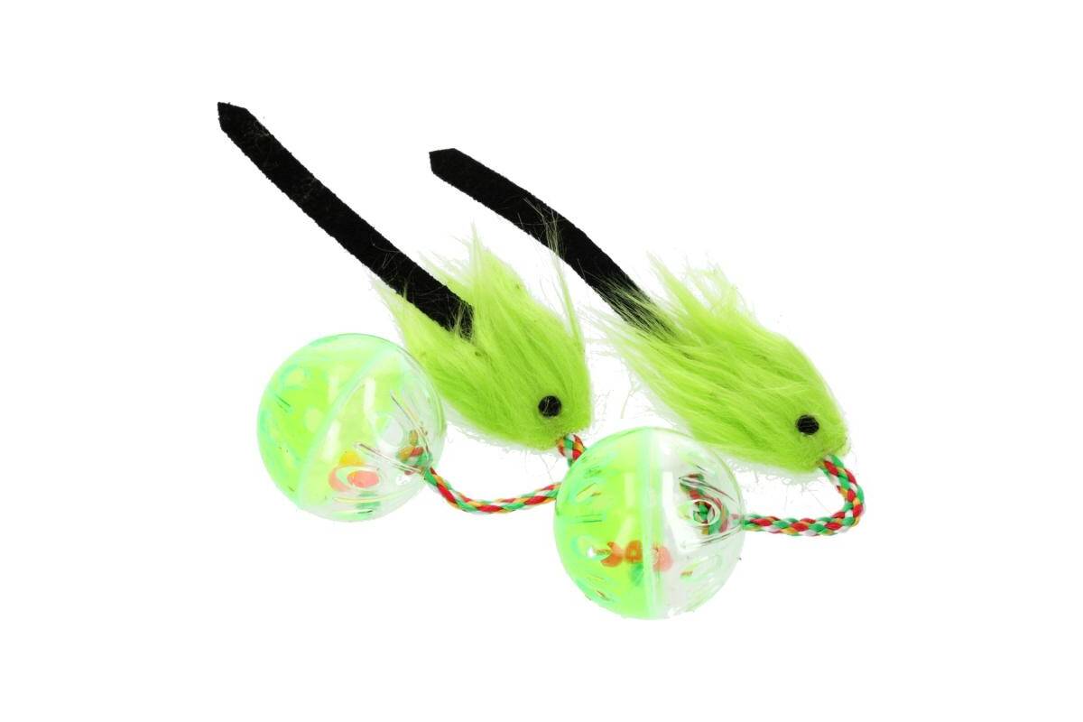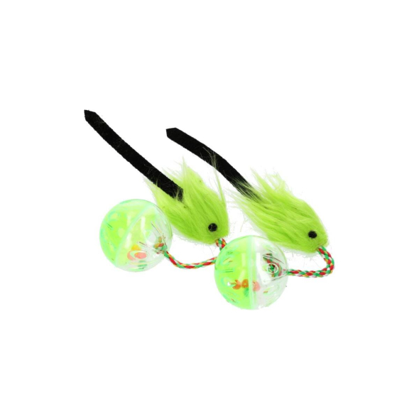 HIPPIE PET toy for cat, balls with mouse, 26 cm, 2 pcs. green