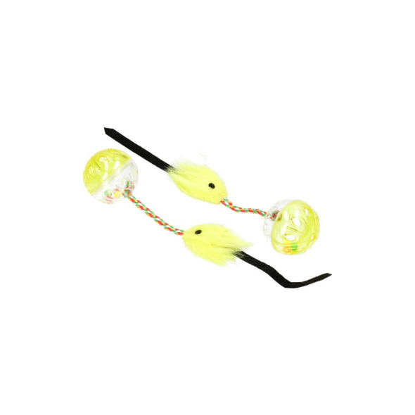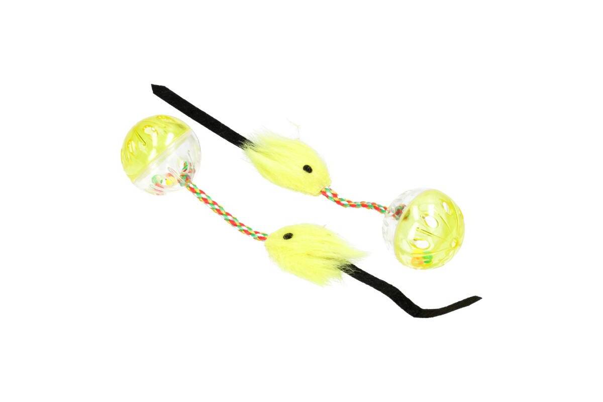 HIPPIE PET toy for cat, balls with mouse, 26 cm, 2 pcs. yellow