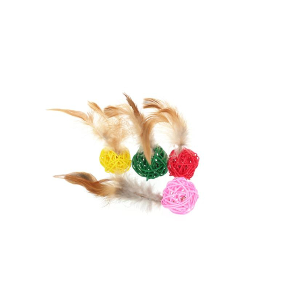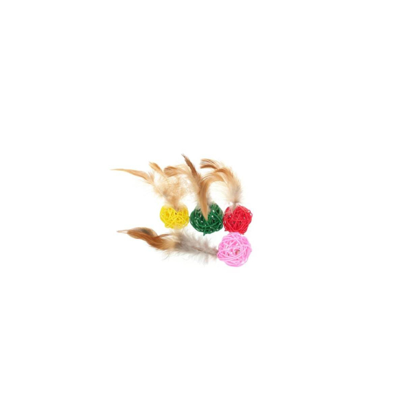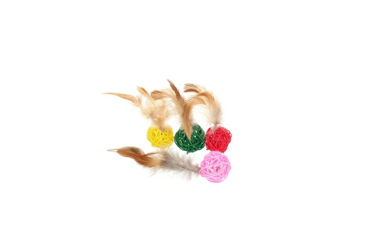 HIPPIE PET toy for cat, balls with a feather, 4 cm multicolored, 4 pcs.