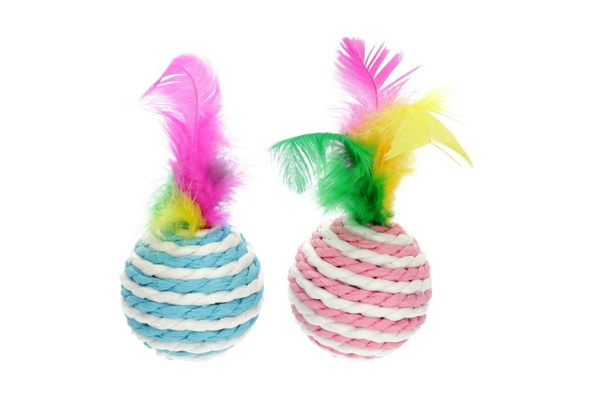 HIPPIE PET toy for cat, balls with a feather, 4.5 cm multicolored, 2 pcs.