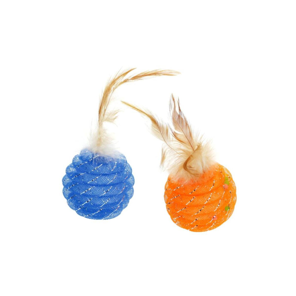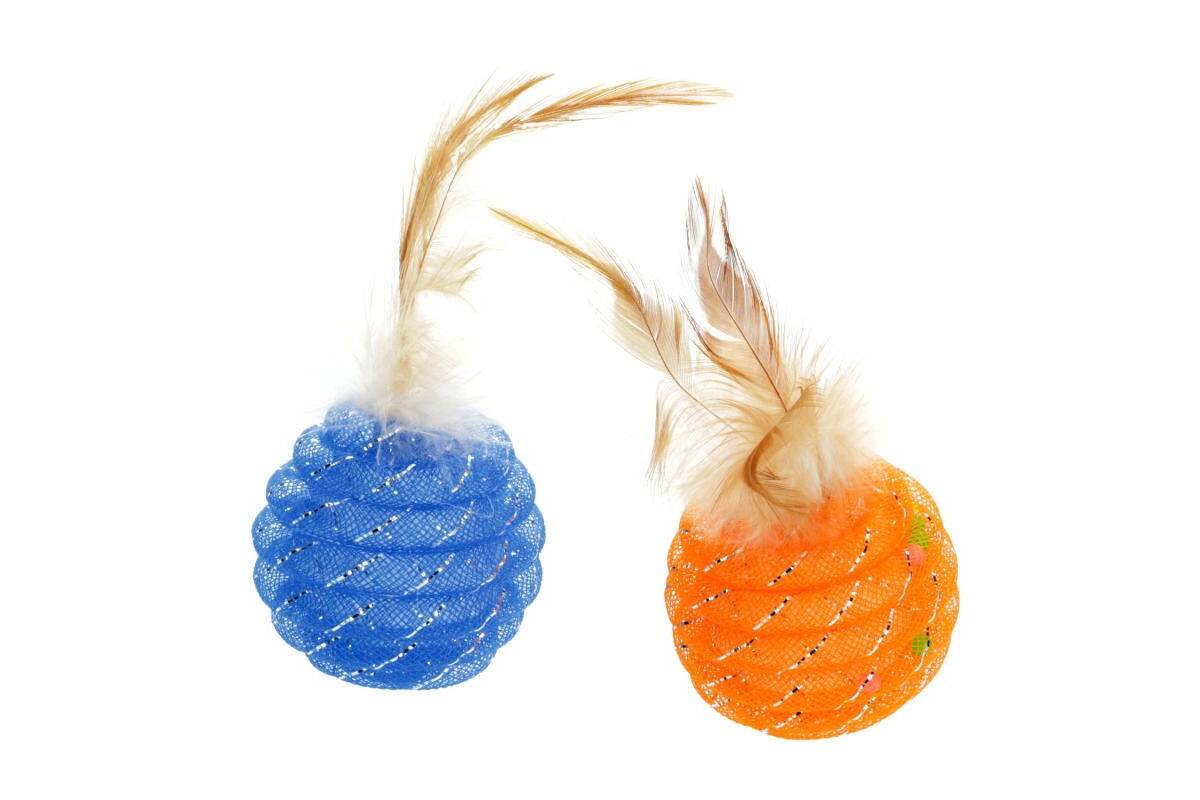 HIPPIE PET toy for cat, balls with a feather, 5 cm, 2 pcs. blue and orange