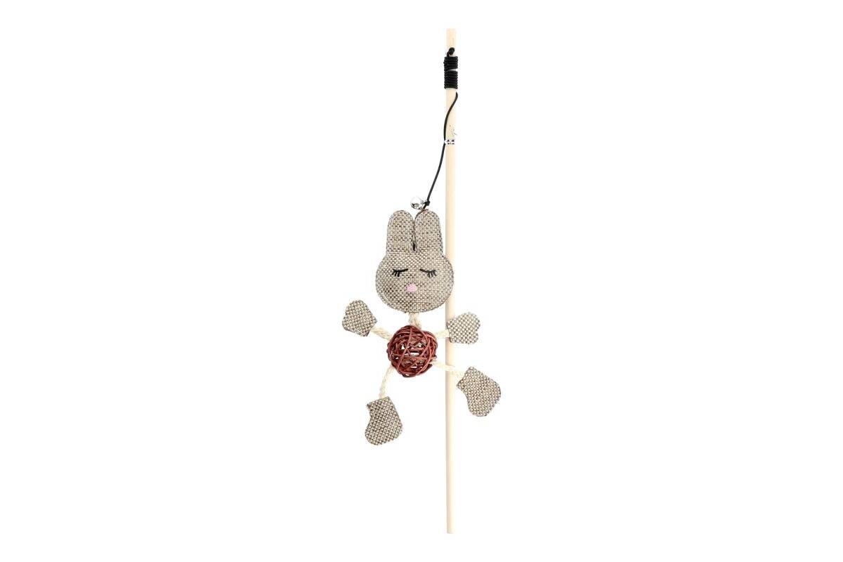 HIPPIE PET toy for cat fishing rod, with a hare, 40 cm brown