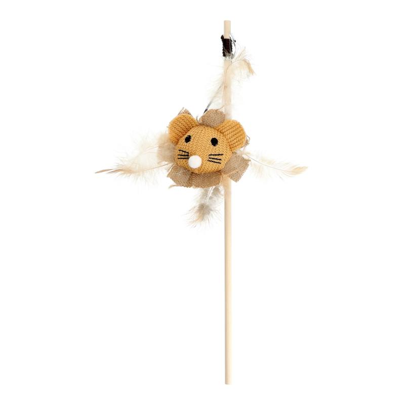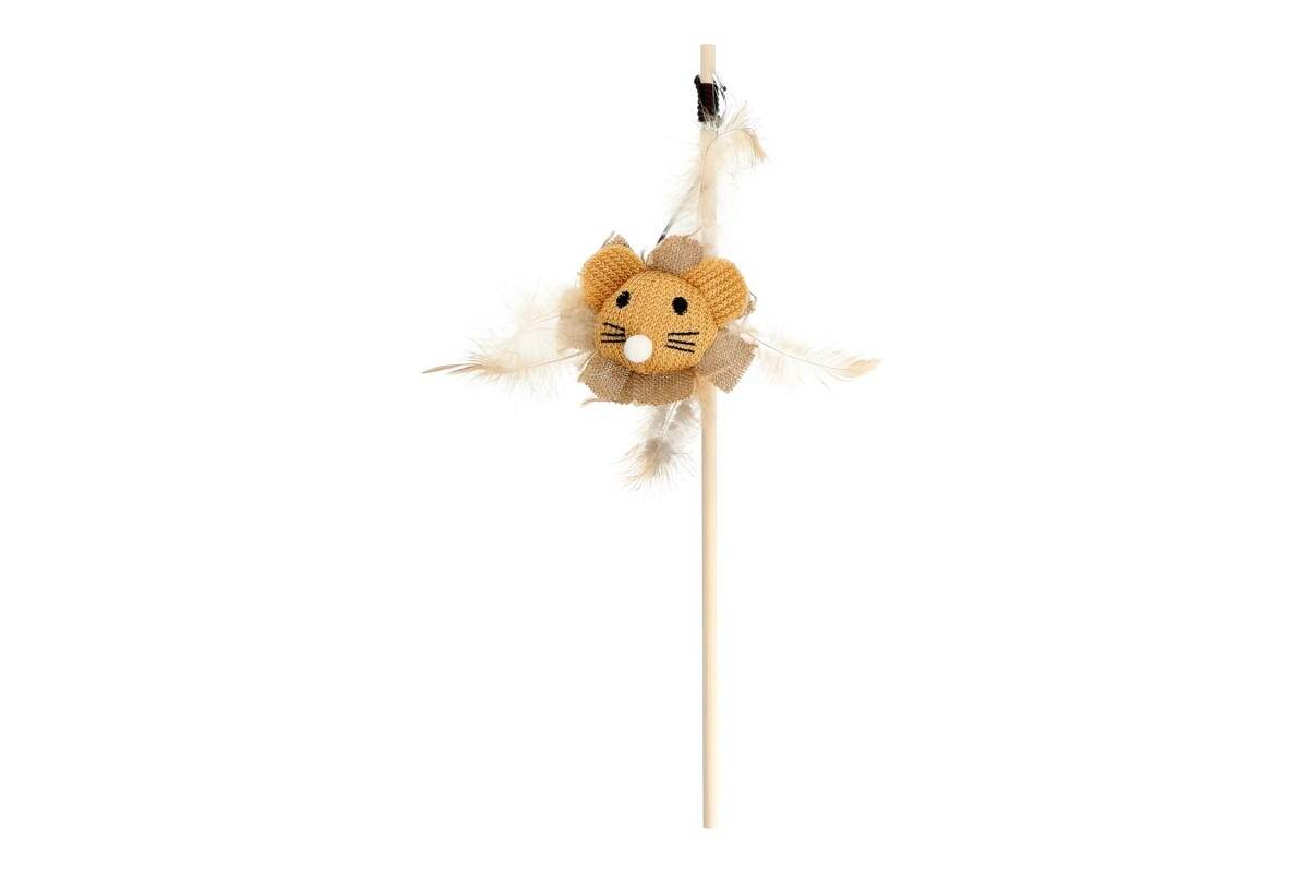 HIPPIE PET toy for cat fishing rod, with mouse, 40 cm brown