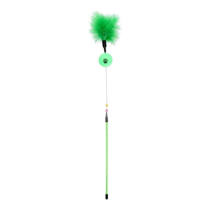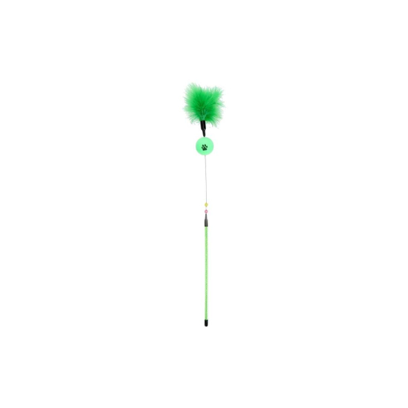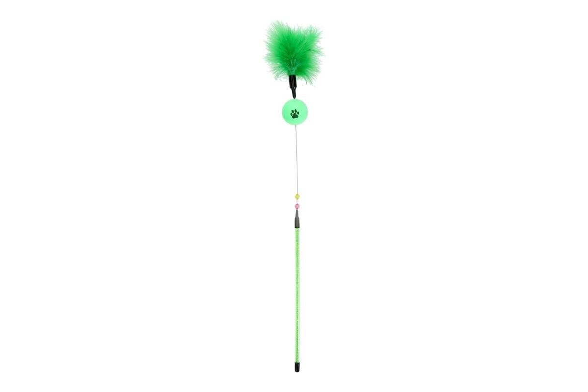 HIPPIE PET toy for cat fishing rod, with a feather, 48 cm green