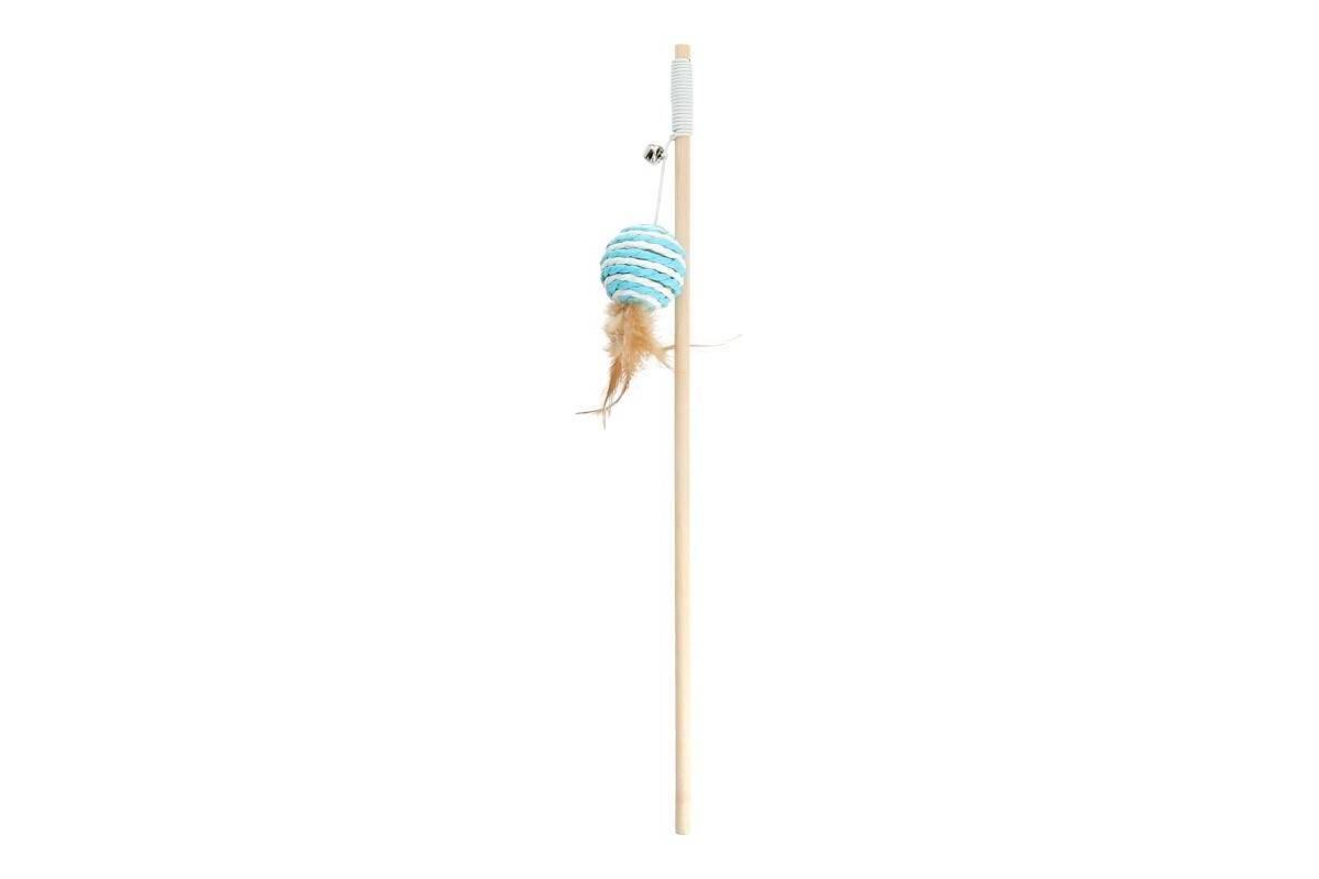 HIPPIE PET toy for cat fishing rod, with a feather and a ball, 40 cm blue