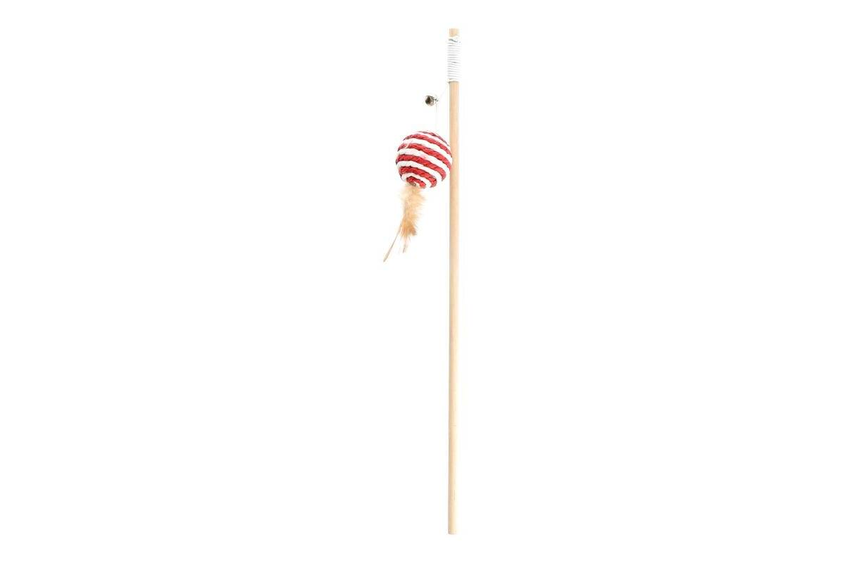 HIPPIE PET toy for cat fishing rod, with a feather and a ball, 40 cm dark red