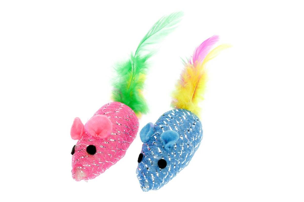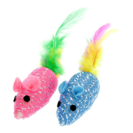 HIPPIE PET toy for cat, mouses with a feather, multicolored, 2 pcs. 7.5 cm