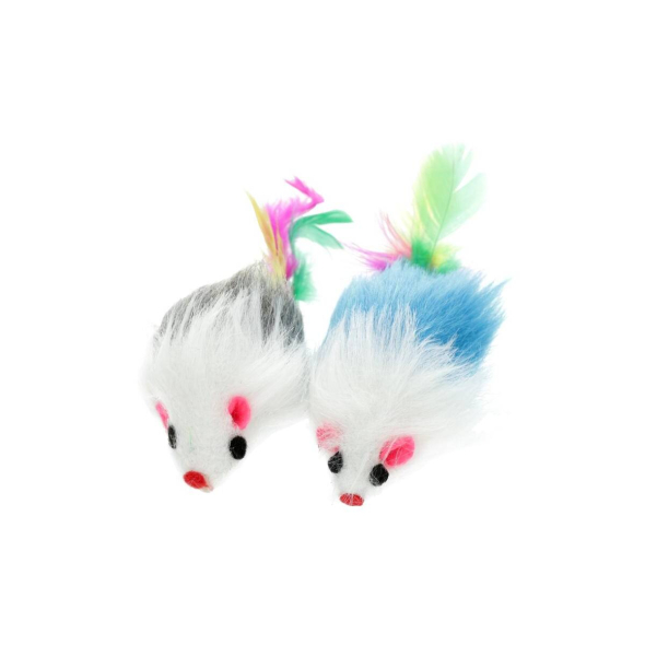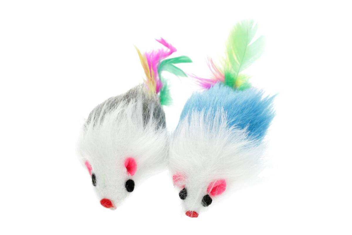 HIPPIE PET toy for cat, mouses with a feather, multicolored, 2 pcs. 9 cm