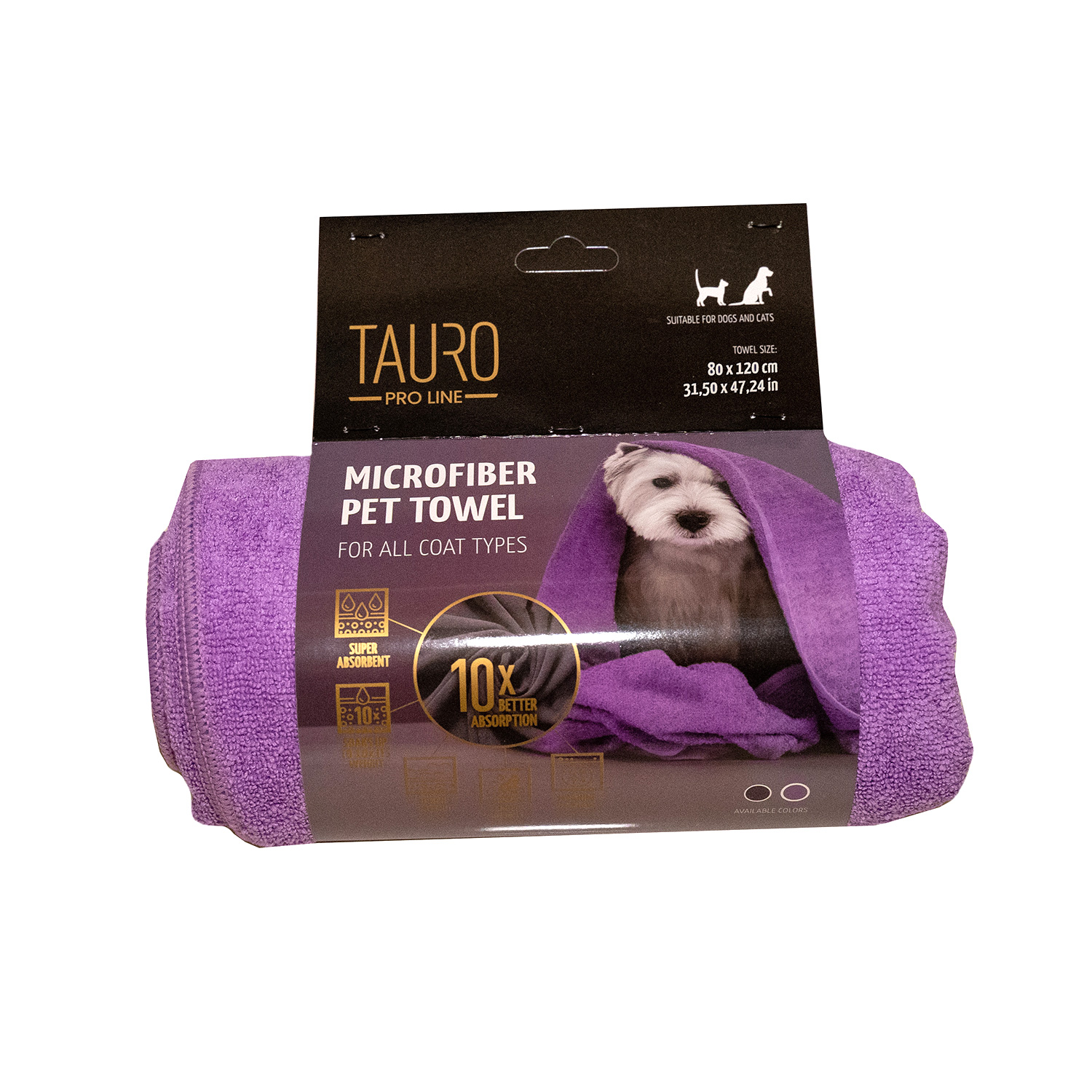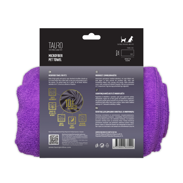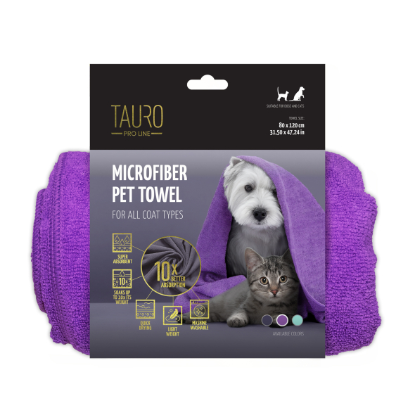 TAURO PRO LINE microfiber towel for pets 80x120 cm, purple