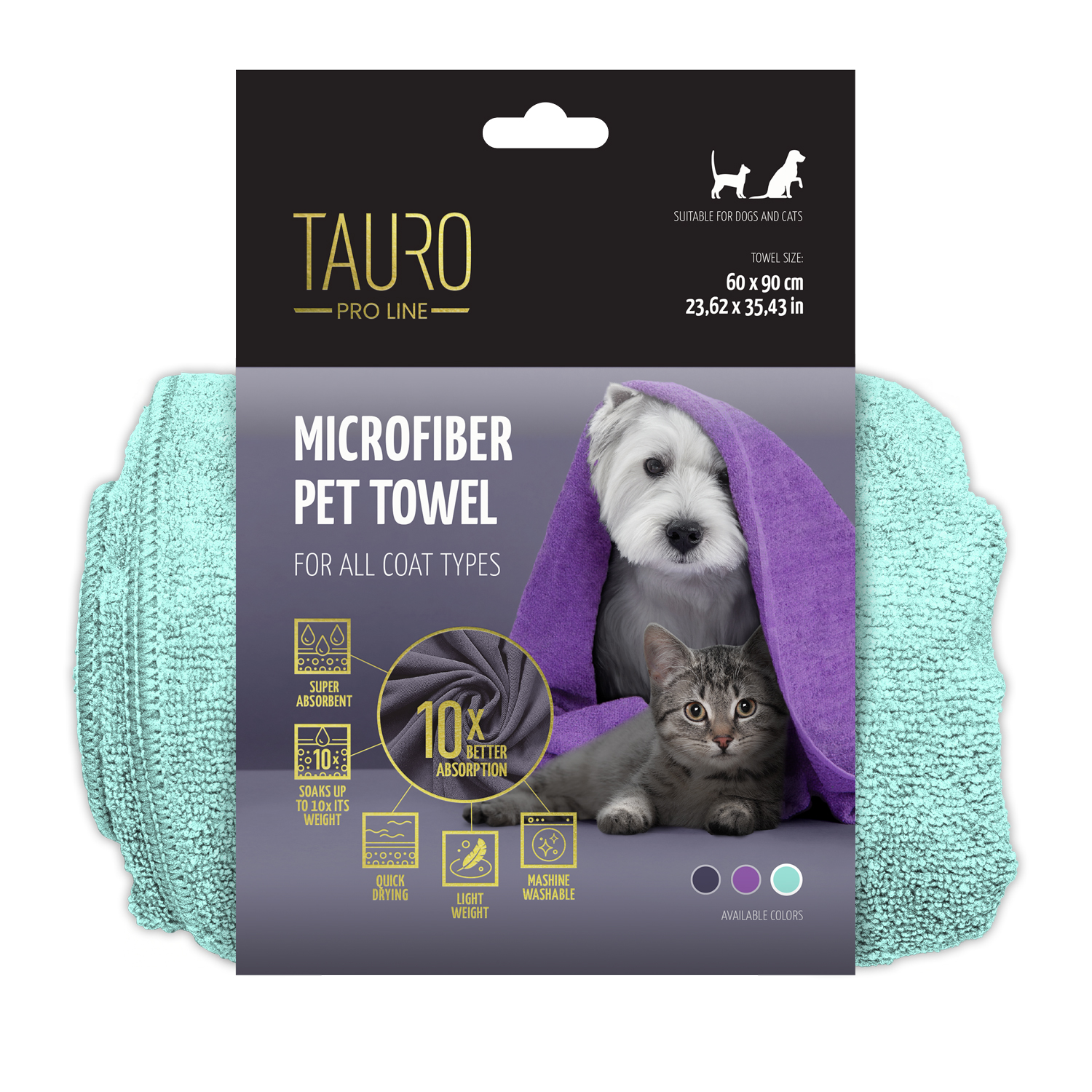 The Tauro Pro Line towel is made of innovative material - ultra-soft microfiber which is suitable for all breeds coat types. The fabric absorbs up to 10 times more water than its weight. An ultra soft, fluffy towel can be used after swimming or for everyday use at home or outside. The towel is intended for pets of all breeds and sizes, it is convenient to use not only at home but also at shows or travels.
