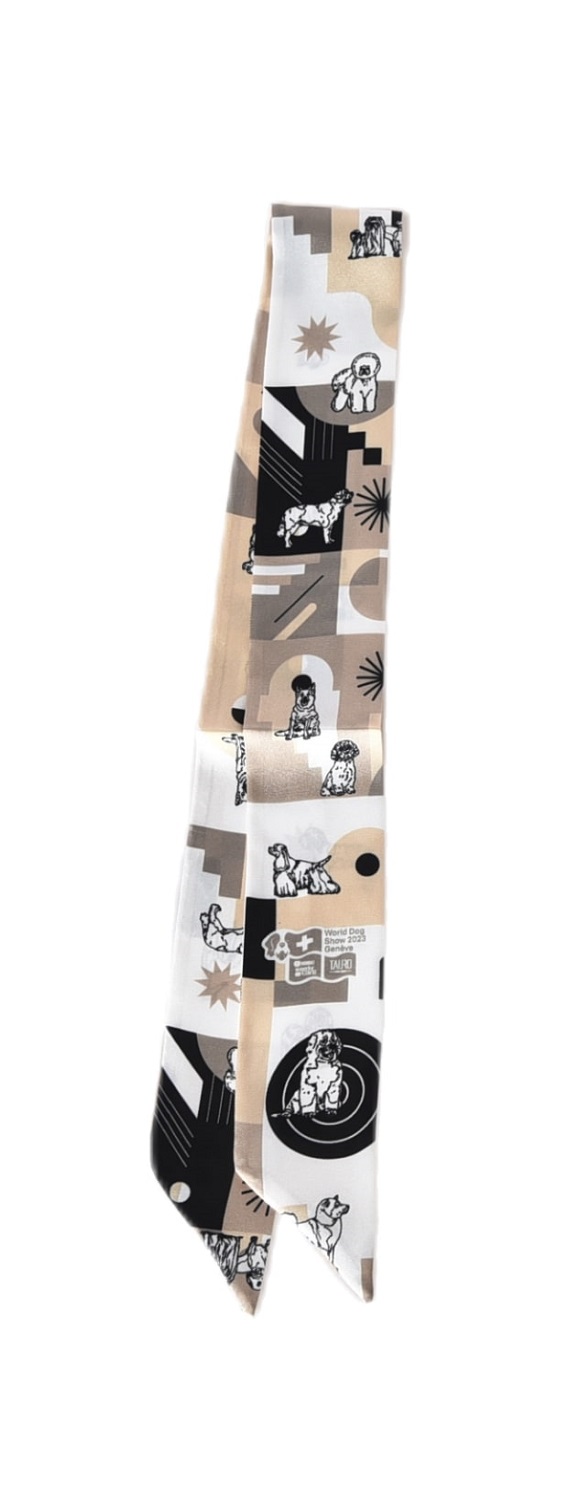 World Dog Show neckerchief with ornaments, cream color, 89x5 cm