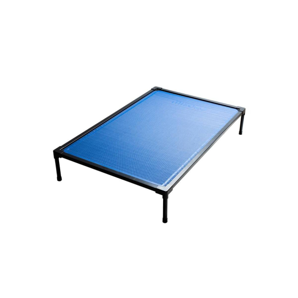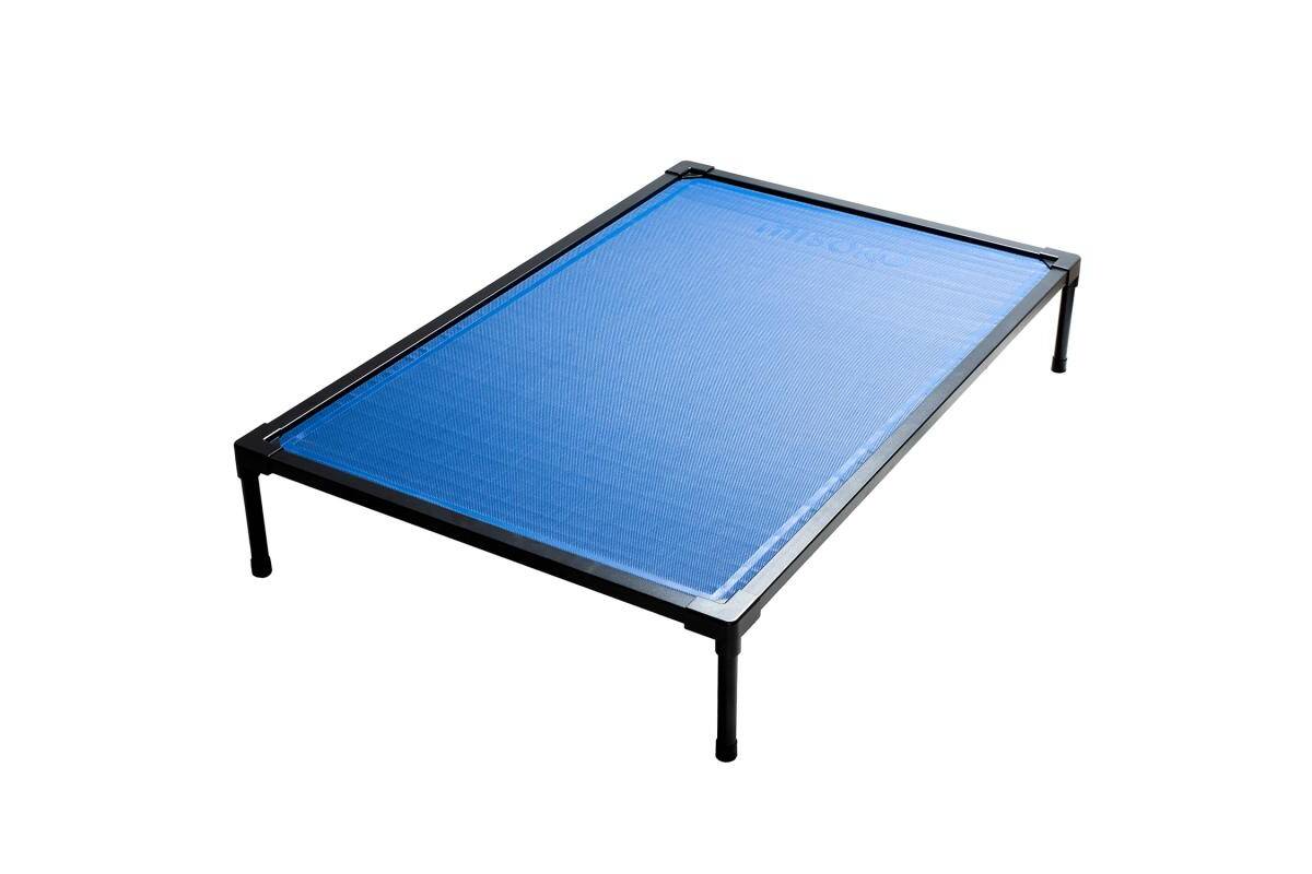 MISOKO elevated pet bed black, with black aluminum frame and additional blue top cover, size M