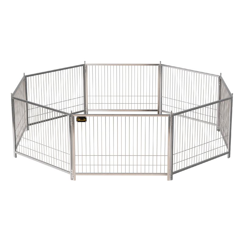 This multi-purpose crate / playpen is crafted from premium 304 stainless steel, ensuring resistance to rust, moisture, and long service life. The foldable and modular construction allows rapid assembly, disassembly, and easy transport.