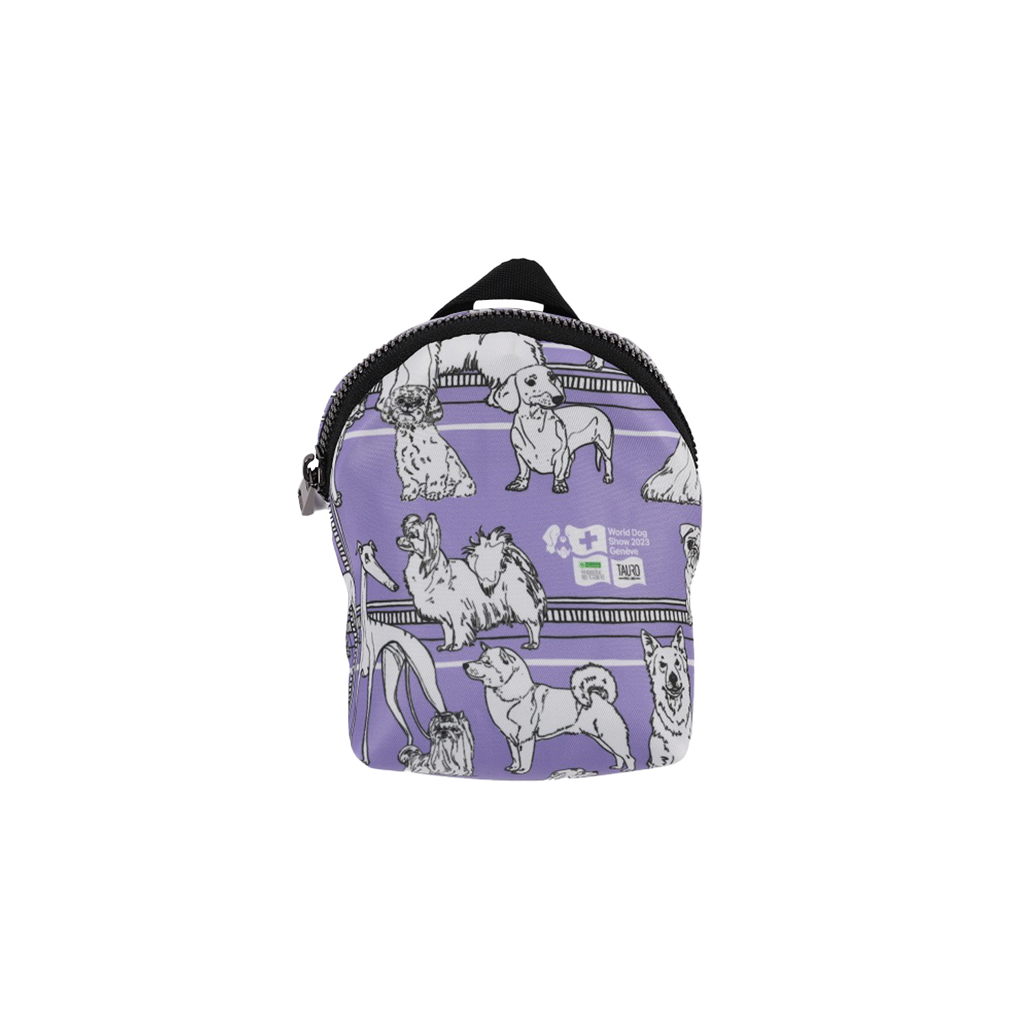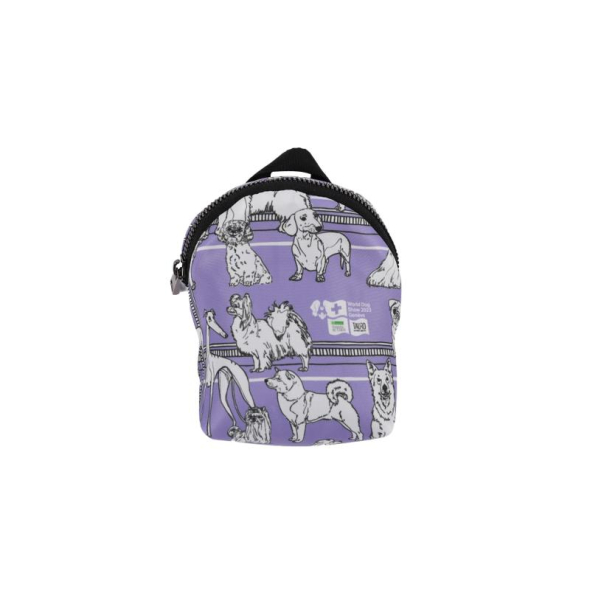 World Dog Show pet treat case with zipper, purple, with puppy appliqués 12x14 cm