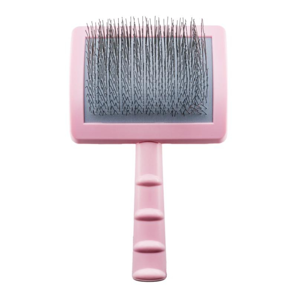 The brush pins are durable and very soft, with a curvature angle that prevents scratching of the pet's skin and makes the brushed coat soft and fluffy. Moreover, superior pins are designed to move easily and detangle coats without hair breakage.