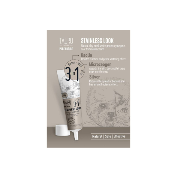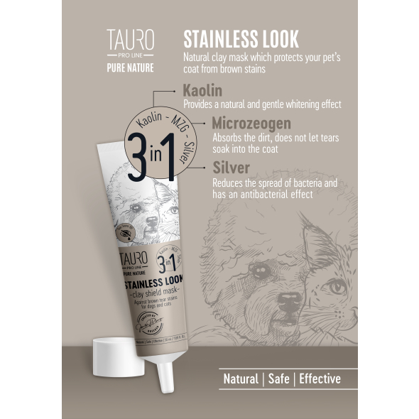 - TAURO PRO LINE Pure Nature Stainless look 3in1, natural clay mask to prevent tear stains on the coat for dogs 50 ml