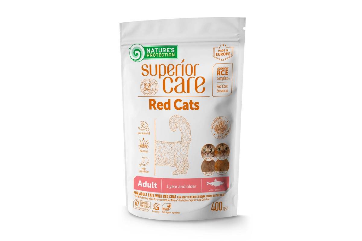 NATURE'S PROTECTION SUPERIOR CARE dry grain free pet food with herring for adult all breed cats with red coat 400 g