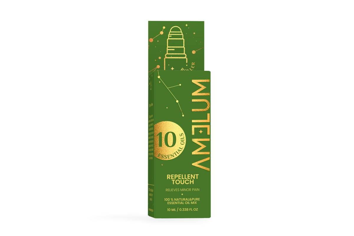 Our Amelum Repellent Touch essential oil blend contains 10 luxurious essential oils. It can help protect against insects by spreading a pleasant citrus aroma.The refreshing aroma of the blend will not only brighten the mood, but also help relieve irritating itching after insect bites.
