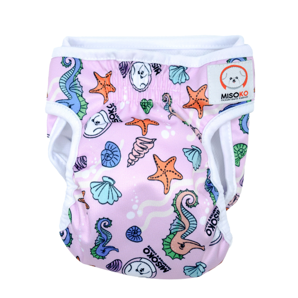 MISOKO reusable diapers for female dogs, with seahorses, pink size S, 1 pc.
