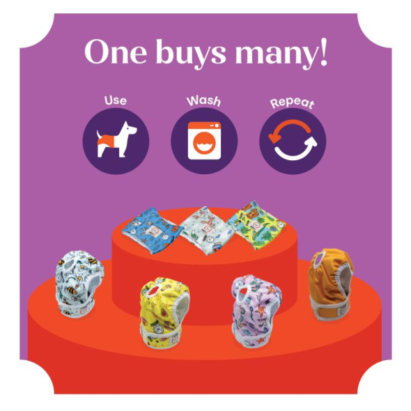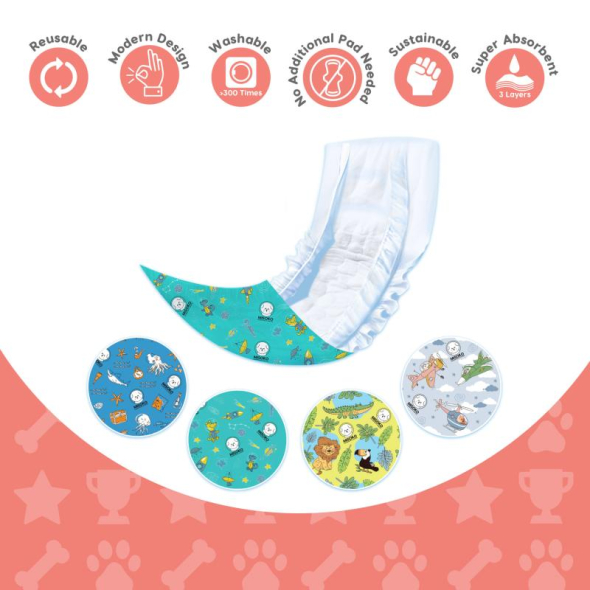 Practical and reusable nappies providing reliable protection for pets with urinary incontinence, nervous urination, or for puppy training.