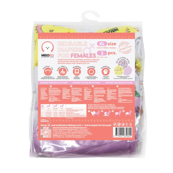 MISOKO reusable diapers set for female dogs, Fantasy size XL