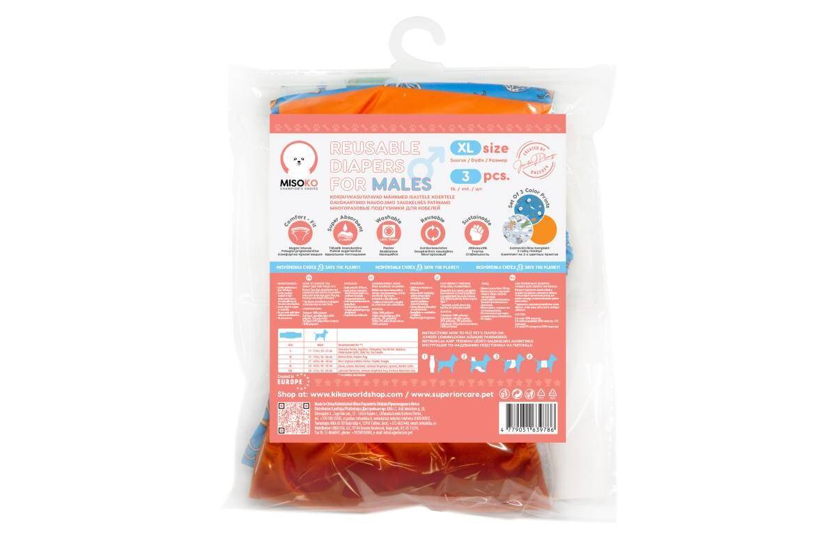 MISOKO reusable diapers set for male dogs, Voyage size XL