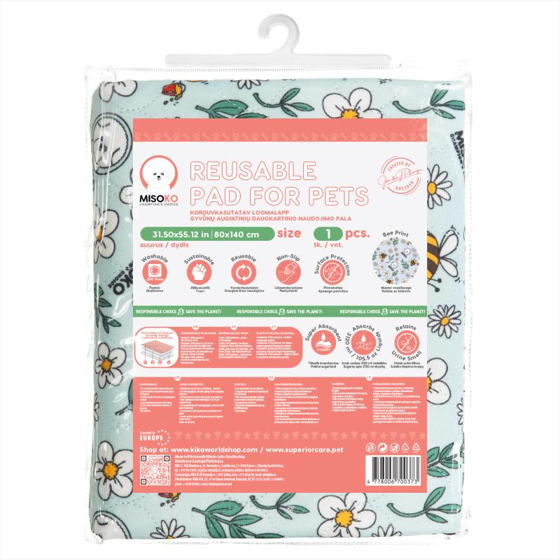 MISOKO reusable pad for pets, 1 pcs. with bees, blue colour, 80x140 cm, 1 pcs.