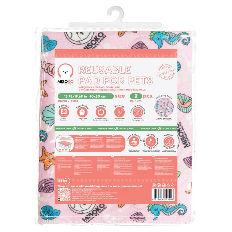 MISOKO reusable pad for pets, 2 pcs. with seahorses, pink colour, 40x50 cm, 2 pcs.
