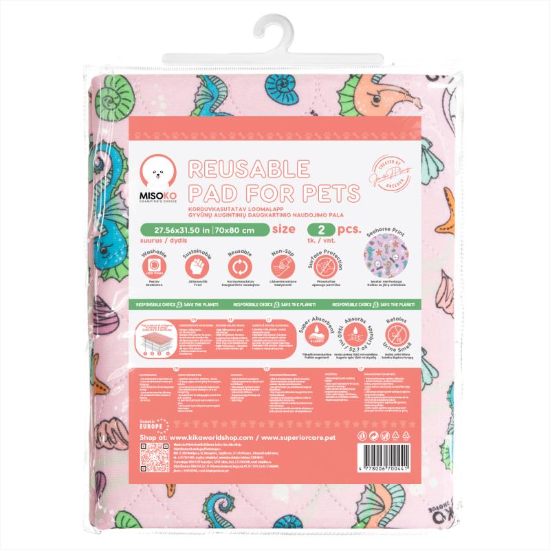 MISOKO reusable pad for pets, 2 pcs. with seahorses, pink colour, 70x80 cm