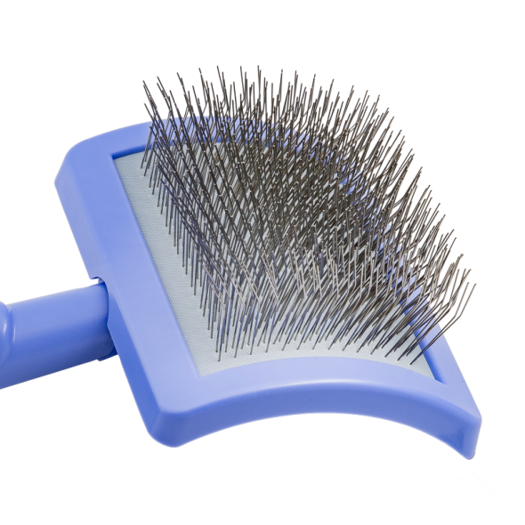 The brush pins are durable and very soft, with a curvature angle that prevents scratching of the pet's skin and makes the brushed coat soft and fluffy. Moreover, superior pins are designed to move easily and detangle coats without hair breakage.
