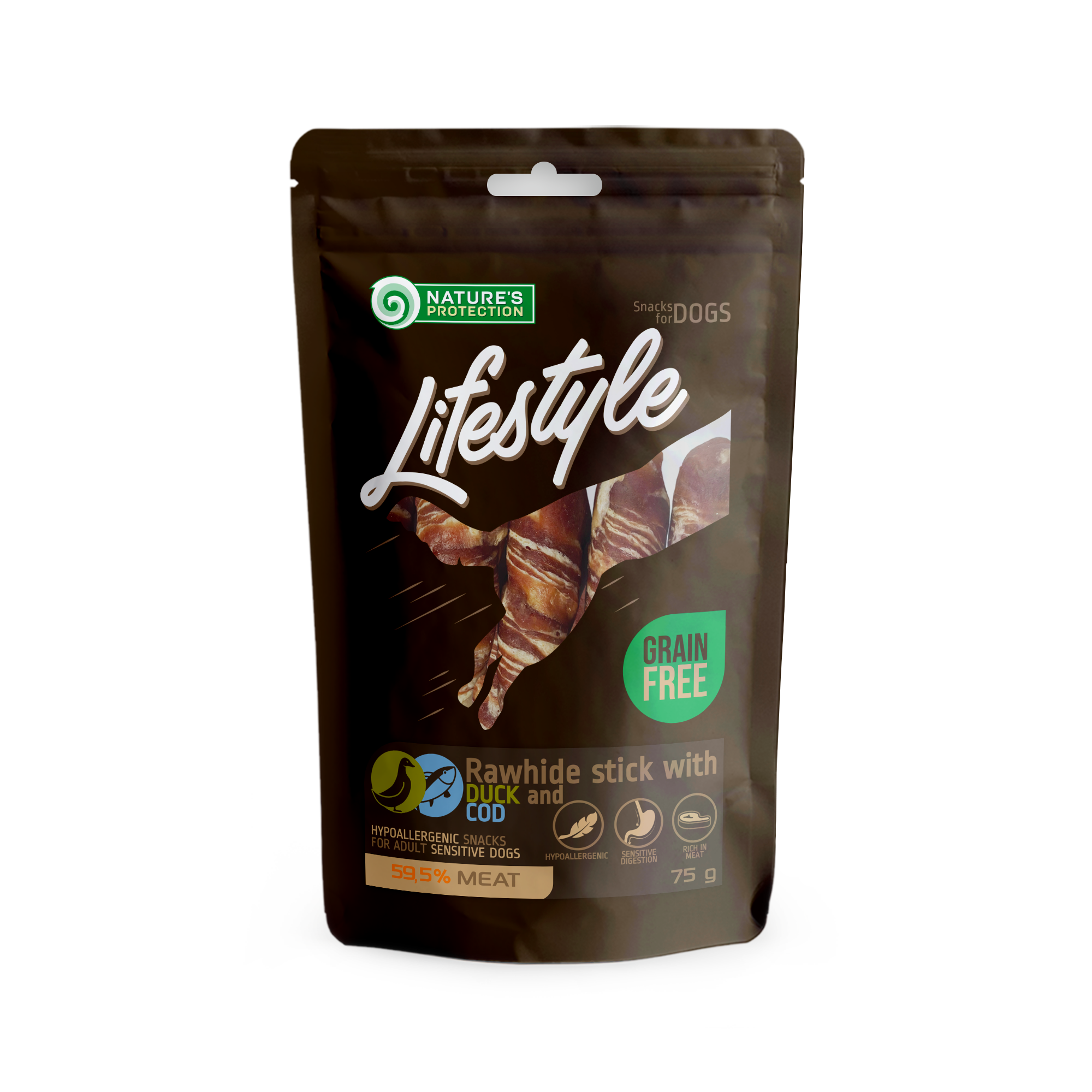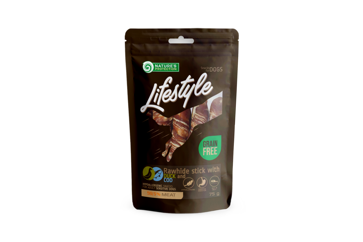 NATURE'S PROTECTION LIFESTYLE snack for dogs rawhide sticks with duck and cod rolls 75 g