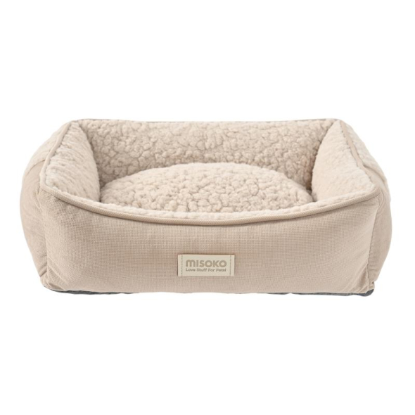 The MISOKO soft bed is a cozy place for resting, napping, and observing. Its inner surface is covered with fleece – a soft, fluffy material commonly used in both human clothing and pet bedding. Fleece retains warmth well, dries quickly, and feels exceptionally pleasant to the touch – even for sensitive pets. The bed’s interior is filled with PP fiber, adding structure and comfort, while its firm square base ensures stability. Raised edges provide a sense of safety, and the removable cover makes cleaning simple – machine washable up to 30 °C. The modern design blends beautifully into home interiors, while various sizes fit both small and medium dogs or cats. This is more than just a bed – it’s your pet’s peaceful corner, crafted with love, style, and comfort.
