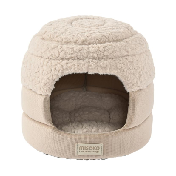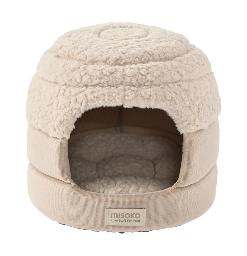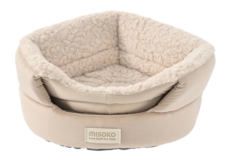 MISOKO soft pet bed with removable canopy, oval, one size light brown