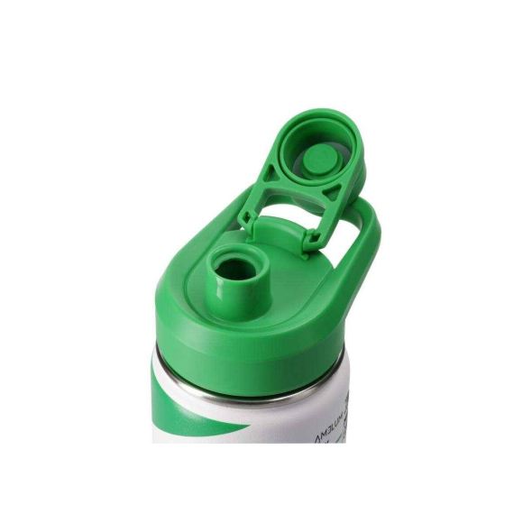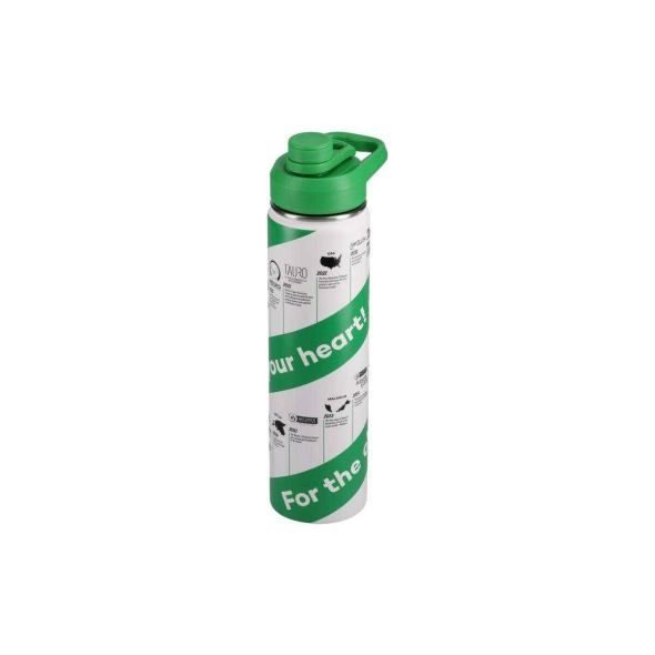 KIKA GROUP stainless steel mug with historical timeline, green lid, white colour and black details, EN 750 ml