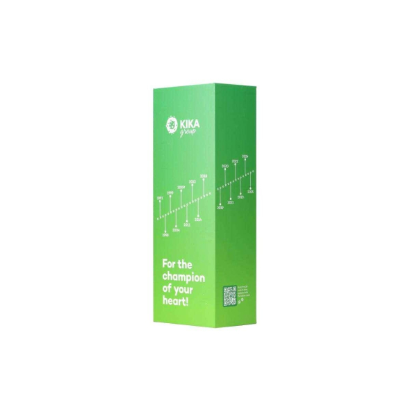 TThe design of the KIKA Group's drink bottle captures the history of pet product development and the company. Every detail on this bottle reflects key milestones in KIKA Group’s history, starting from 1991, when the first KIKA store was opened, to its expansion into international markets, product innovations, and global recognition.