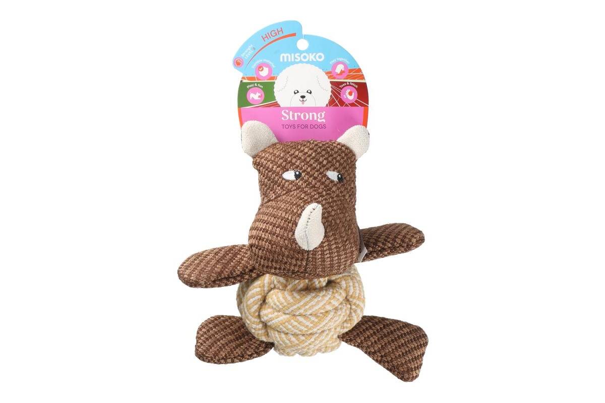 MISOKO Strong dog toy with rope hippopotamus, 17.5 cm