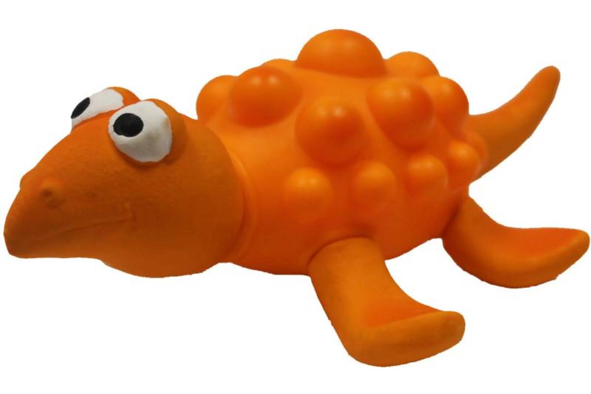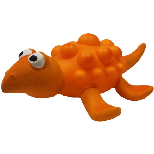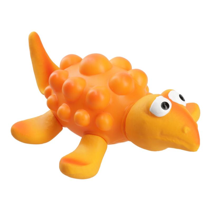 This orange vinyl dinosaur is the perfect choice for active dogs who enjoy sound and the joy of chewing. With a classic shape and made from durable yet flexible vinyl, it’s safe, lightweight, and easy to grip. The squeaker inside further engages your dog in play.