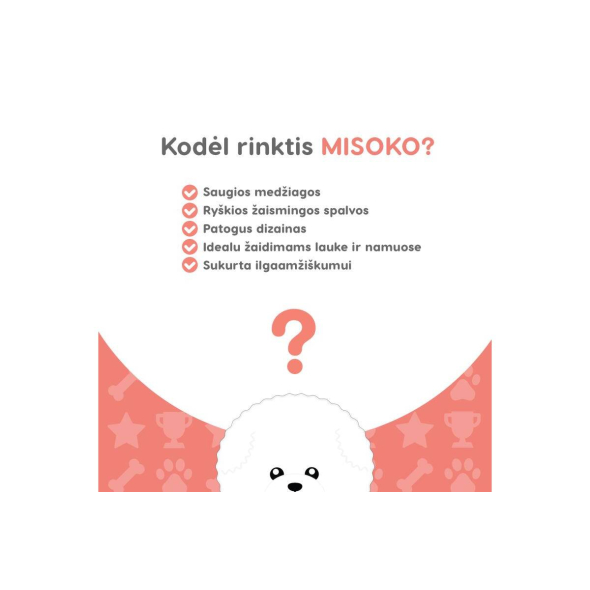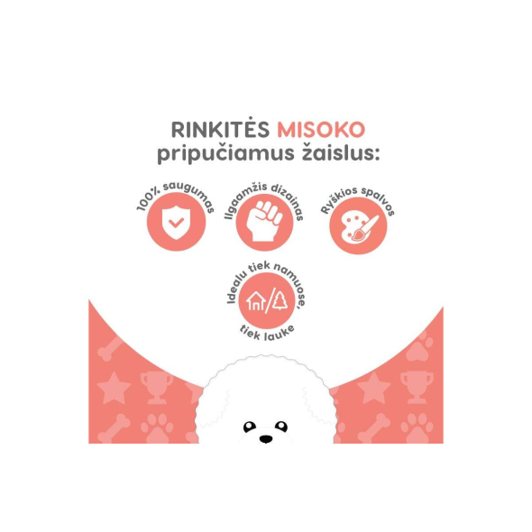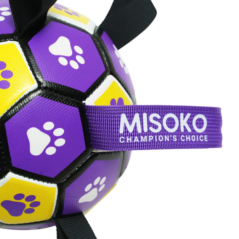 The interactive MISOKO dog football toy is perfect for extended and enjoyable playtime with your beloved four-legged friend! This bouncy, lightweight, and colourful ball is ideal for various outdoor games. MISOKO toys are designed to encourage physical activity in dogs; they are vibrant, colourful, and unique. Not only are these toys great for reinforcing commands, but they also enhance communication skills and ensure long-lasting, engaging playtime with your pet.
