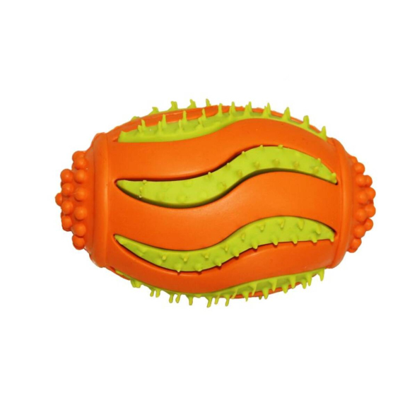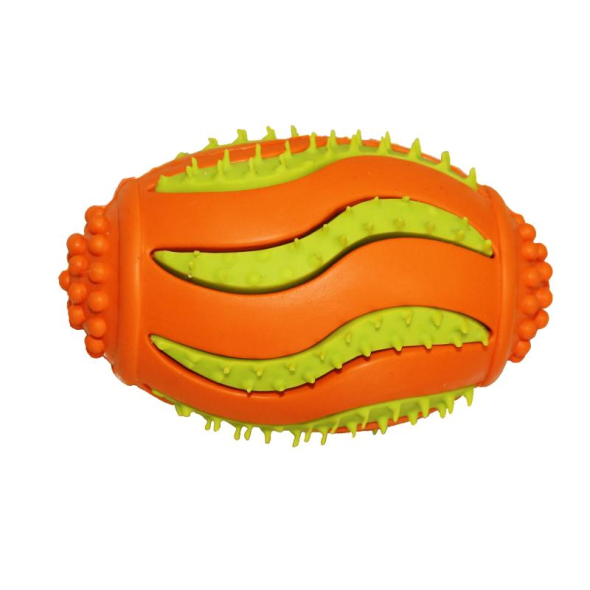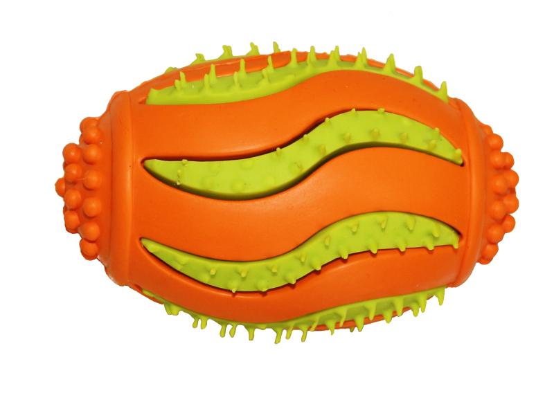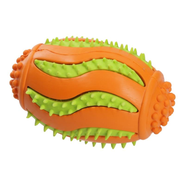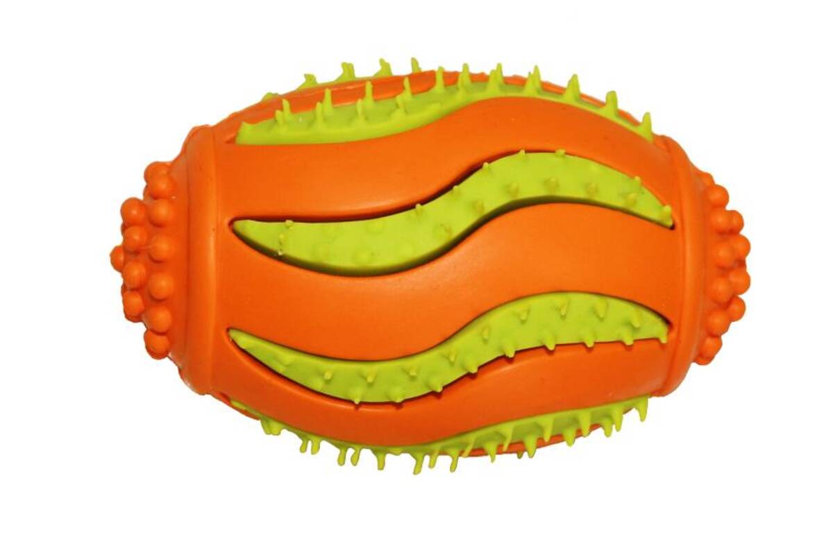 MISOKO dog toy, rugby ball, rubber, latex, green and orange 9 cm